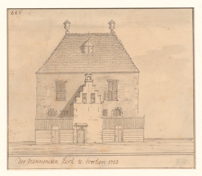 Gezicht op de Mennonitenkerk ofwel Doopsgezinde kerk te Workum