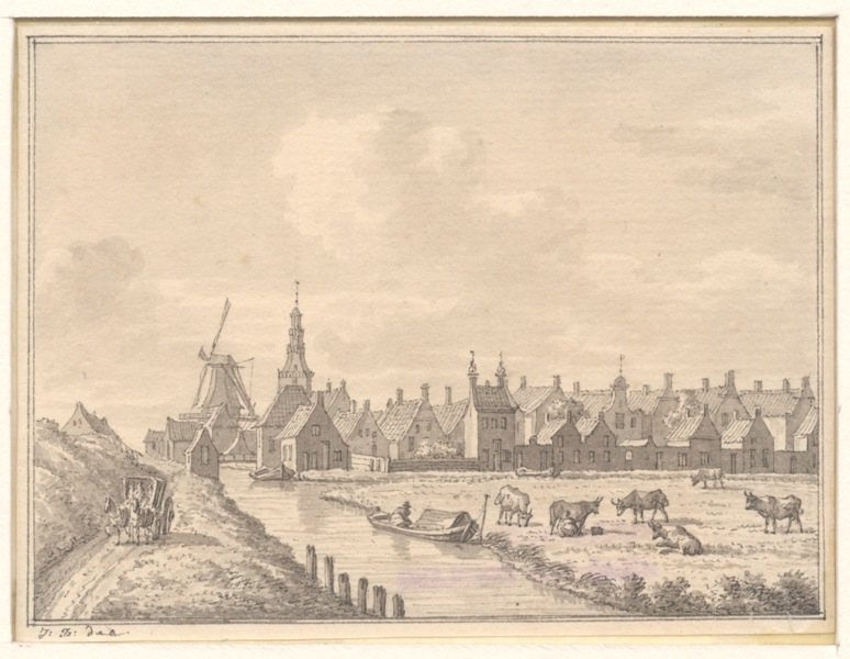 Gezicht op Hindeloopen vanuit de landzijde