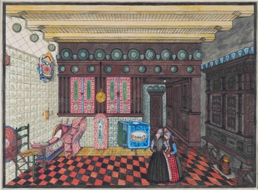 Gezicht op een Hindeloper kamer te Hindeloopen