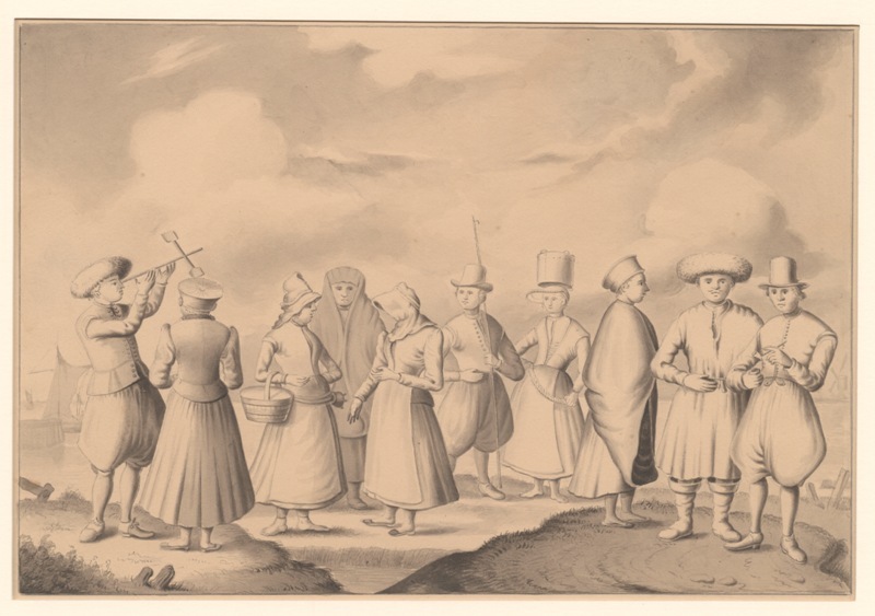 Gezicht op oud Hindeloper klederdracht te Hindeloopen
