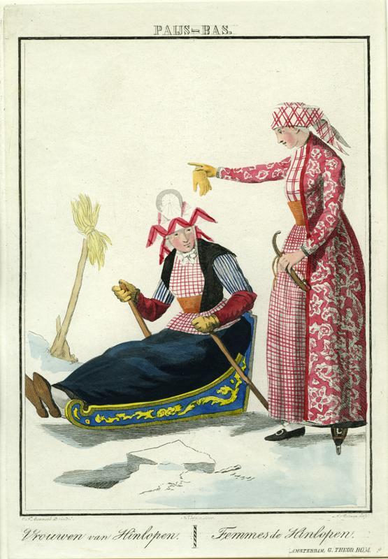 Hindeloper vrouw en meisje op het ijs te Hindeloopen
