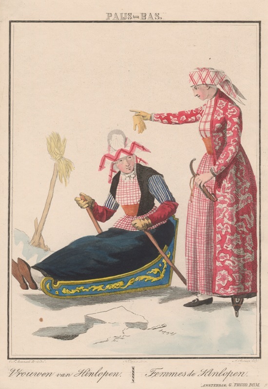 Hindeloper vrouw en meisje op het ijs te Hindeloopen