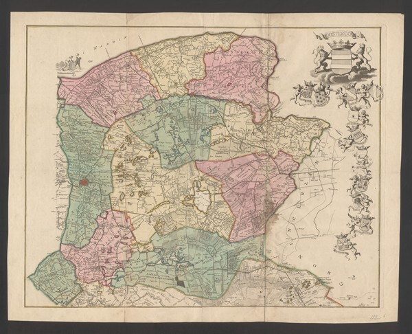 Kaart van Oostergoo, deel van de Schotanus-Vegelin wandkaart van Frieslant