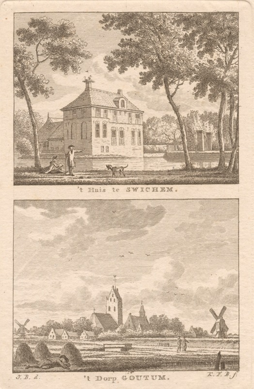 Gezicht op het huis te Swichum en op het dorp Goutum