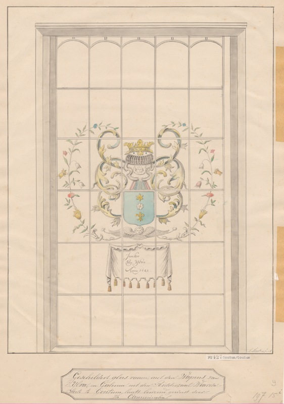 Tekening van wapenraam van Joncker van Aylva in Wiarda State te Goutum