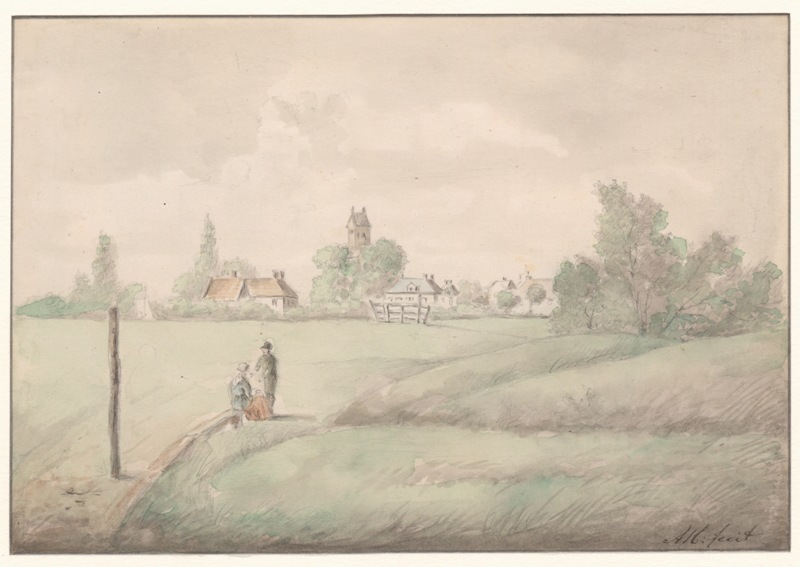 Gezicht op het dorp Huizum vanaf Achter de Hoven