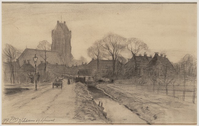 Gezicht op de kerk en en het dorp vanaf de Tynjedyk te Huizum