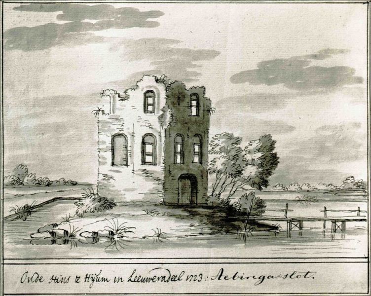 Gezicht op de oude stins van het Aebingaslot te Hijum