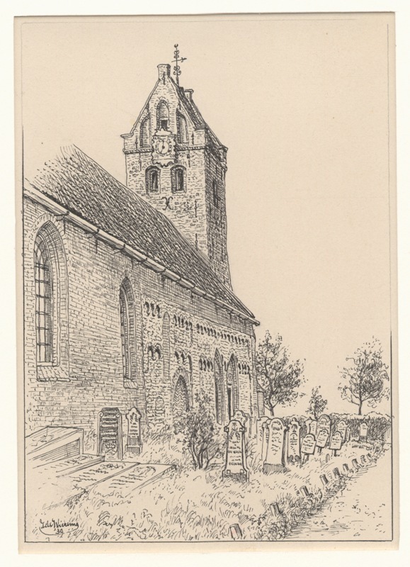 Gezicht op de noordmuur van de kerk te Jelsum