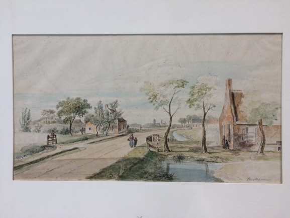 Gezicht op het dorp Marssum met aan de horizon het Poptaslot