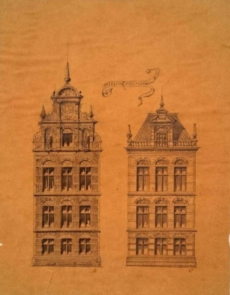 Tekening van twee gevels van het Friesch Genootschap