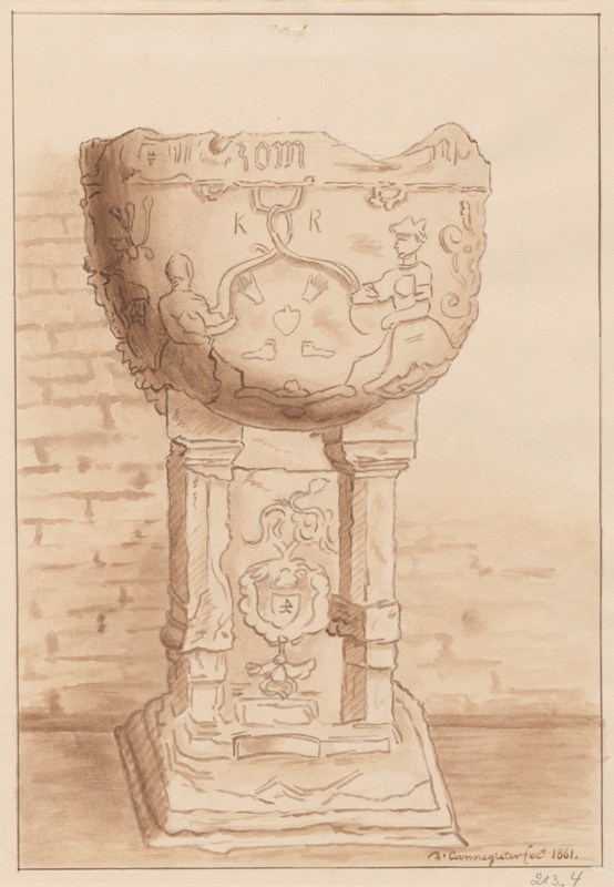 Gezicht op een doopvont te Genum