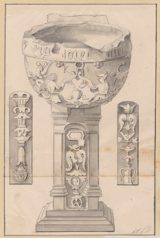 Gezicht op een doopvont te Genum