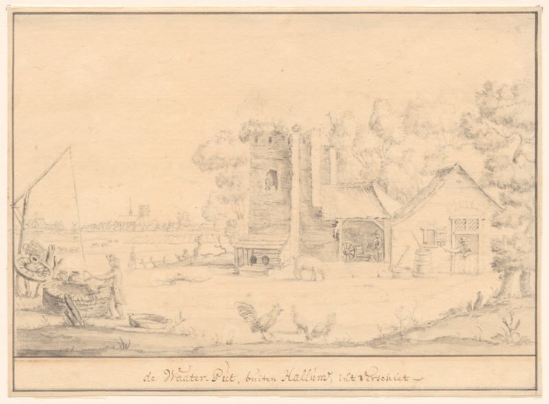Gezicht op de waterput buiten Hallum