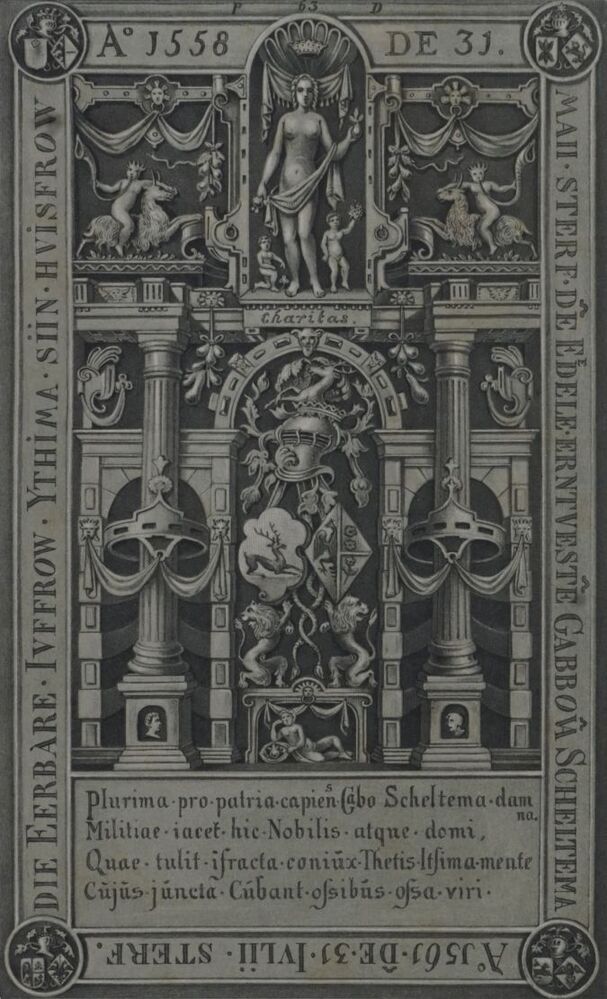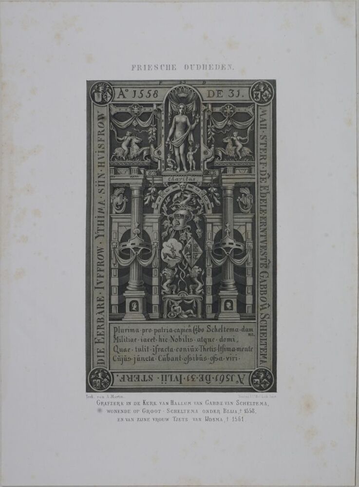 Grafzerk van Gabbe van Scheltema en zijn vrouw Tyets van Ydsma in de kerk te Hallum