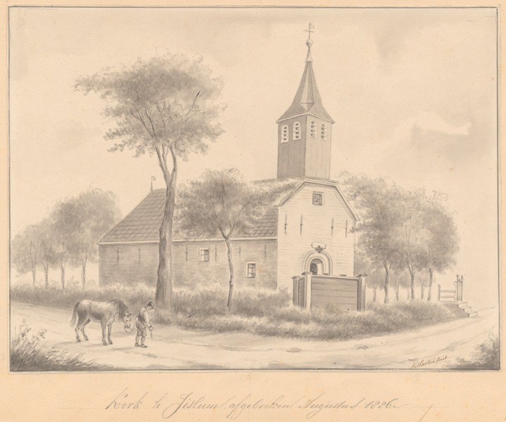 Gezicht op de kerk te Jislum