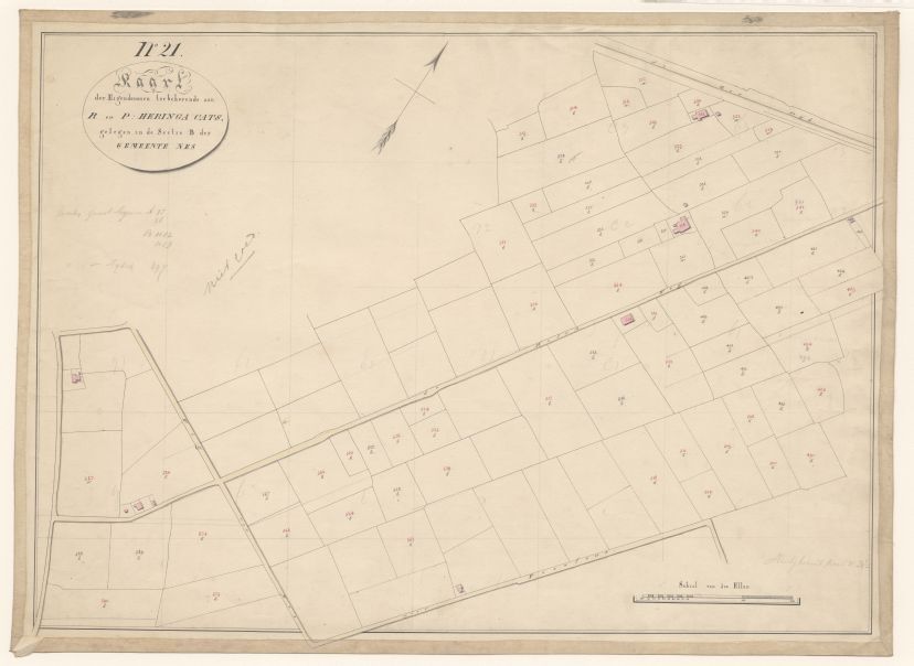Kaaart van de eigendommen van R. en P. Heringa Cats te Nes in West-Dongeradeel