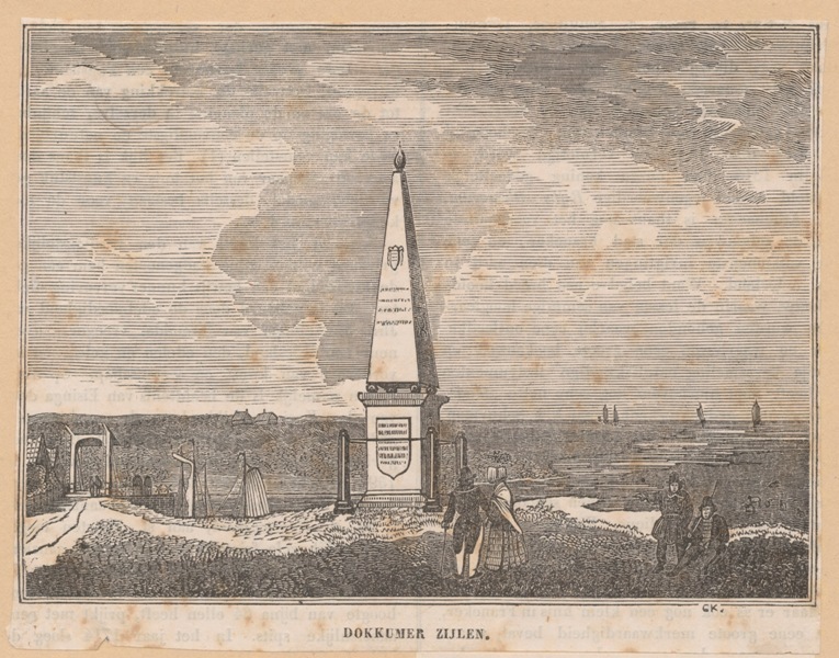 Gezicht op de gedenksteen bij Dokkumer Nieuwe Zijlen