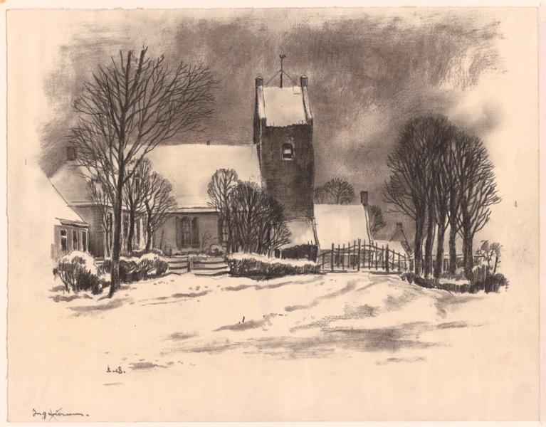 Gezicht op de kerk in het dorp Engwierum