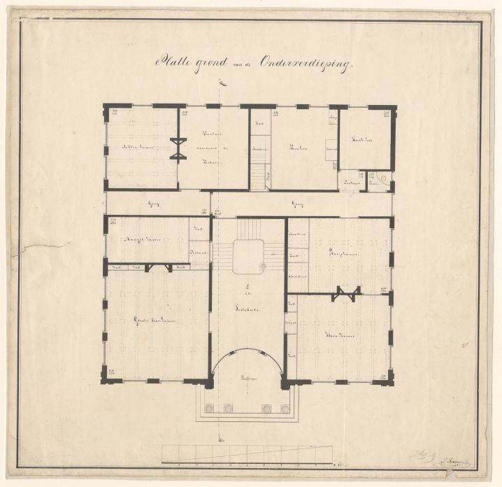 Voorstelling in lijnen van een architectonisch object langs geometrische weg, die niet een indruk weergeeft, zoals het gebouw door het menselijk gezicht gezien kan worden, maar de abstracte driedimensionale gedaante van het object, verkregen door stelselmatige berekening en opmeting. De weergave geschiedt op schaal en meestal in orthografische projectie. Voor de aanschouwelijkheid worden er soms perspectivische voorstellingen bijgevoegd. Een stel architectuurtekeningen bestaat gewoonlijk uit plattegrond(en) of horizontale doorsnede(n), gevelopstanden, lengte- en dwarsdoorsneden, vaak ook details. Zoals hiervoor werd aangeduid, is de architectuurtekening:–ontwerp voor een voorgenomen bouwwerk of bouwdeel, ev. met varianten. Voor de uitvoering zijn nog werktekeningen nodig. In het eerste stadium kan een ontwerp schetsmatig, algemeen oriënterend en suggestief zijn. In alle perioden sinds de vroege M.e. zijn ontwerptekeningen gemaakt. Ook symbolische ontwerpen, zoals het Pantheon der Mensheid van Berlage uit 1915, kan men hiertoe rekenen.–opmeting van een bestaand object, ter herinnering, als voorbeeld, met het oog op herstel, ev. een reconstructie, b.v. het schetsboek van Villard de Honnecourt (c. 1235), de talrijke restauratie-ontwerpen van architecten in XIX-XX en de sinds de renaissance geliefde reconstructie van antieke bouwwerken. Het oudst bekende document op dit gebied is de plattegrond voor de abdij van St.-Gallen in Zwitserland, dat in het archief van deze abdij bewaard is. Het is een ideaal schema dat iemand uit de hofkring van Karel de Grote omstreeks 820 aan abt Gozbert toezond. Het is slechts gedeeltelijk verwezenlijkt, maar zeer belangrijk voor de kennis van de vroeg-m.e. aanleg van kloosters. De opstand van een aantal gebouwen is in het horizontale vlak neergeslagen, zoals ook op een schetsmatige plattegrond van c. 1150 van de abdij van Canterbury.Meer recht op de naam architectuurtekening heeft een aantal tekeningen uit de gotische tijd, waarvan wij aanstippen verschillende tekeningen in het Livre de portraicture van Villard de Honnecourt. Hier worden op geometrische basis (driehoeken, rechthoeken, diagonalen) onderdelen aangegeven betreffende de kathedraal van Reims en het maaswerk daarvan, roosvenster te Lausanne, toren van Laon, plattegronden van Meaux en Cambrai (Kamerijk). Verder bleven vele tekeningen uit XIII-XV bewaard, o.a. te Reims, Straatsburg, Keulen, Clermont, Limoges, St.-Quentin, Milaan, Wenen, Barcelona. Interessant zijn een ontwerp uit c. 1230 voor de O.L.V.kerk te Trier op een steen in een traptoren en M. Röritzers gedrukte boekje uit 1486 over ‘der Fialen Gerechtigkeit’. Ook in de Nederlanden bleven talrijke tekeningen bewaard, uit de late M.e. (torens te Breda, Mechelen, Zierikzee en Mons, stadhuis te Gent) en vele uit latere perioden. In het kasteel Cannenburch te Vaassen (Gld.) is een in de pleisterlaag ingekraste tekening op ware grootte aangetroffen van een gevelbeëindiging. Met de uitvinding van de boekdrukkunst en vooral na die van het centrale perspectief en de theoretische grondslagen van de projectie verschijnen de ontwerpen en reproducties in talloze werken over architectuur ( ordeboek, architectuurtraktaat).Kenmerkend voor de architectuur uit de Noord-Europese baroktijd is een eigenaardige behandeling, waarbij uitspringende architectuurdelen wit worden gelaten. Eind XVIII is de toen geliefde scenografie (verkort weergegeven tekeningen, ook voor toneeldoeken) van invloed, getuige de ‘vedute’ (1745-’75) van Piranesi c.s.. (Haslinghuis) https://data.cultureelerfgoed.nl/term/id/cht/25df5f68-005c-45b0-afba-d6f13b9b41e1