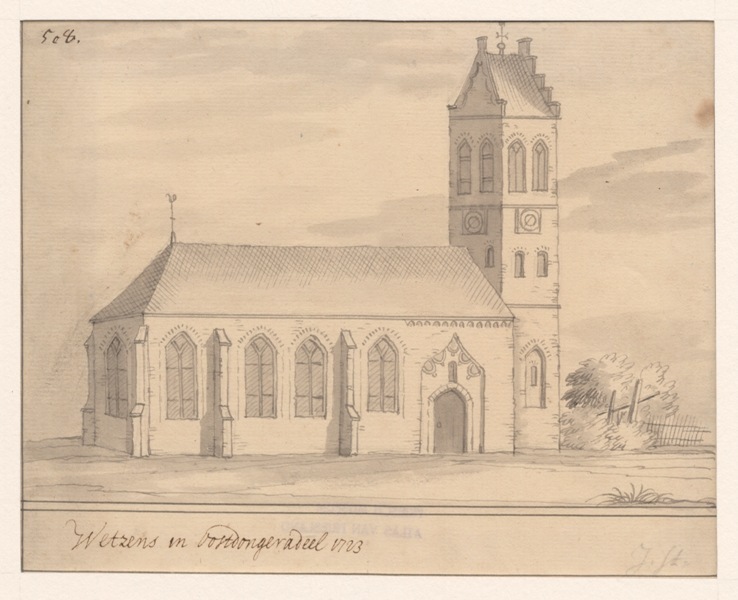 Gezicht op de kerk te Wetsens in Oost-Dongeradeel