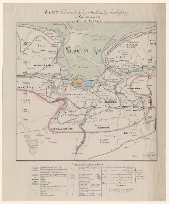 Kaart van de Lauwerszee in de vroegere en tegenwoordige toestand