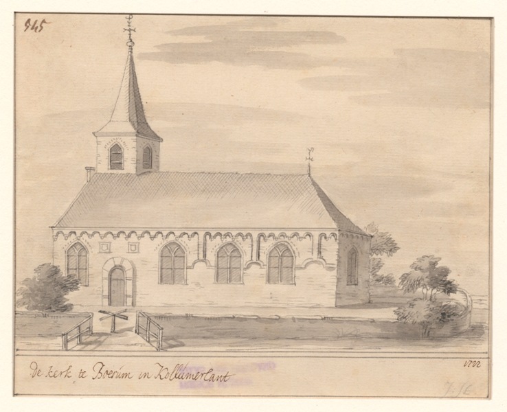 Gezicht op de kerk met spitstorentje te Burum in Kollumerland