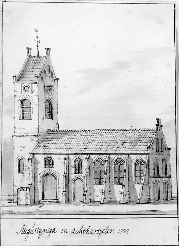 Gezicht op de kerk met stompe toren te Augustinusga in Achtkarspelen
