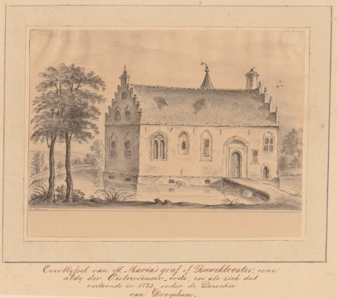 Gezicht op St. Maria's graf ofwel Buweklooster te Drogeham