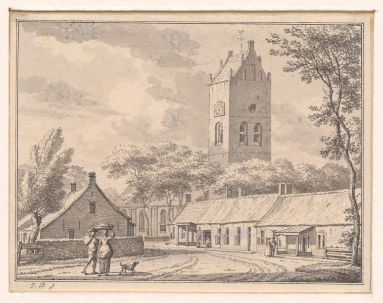 Gezicht op het dorp met de kerk te Driesum in Dantumadeel