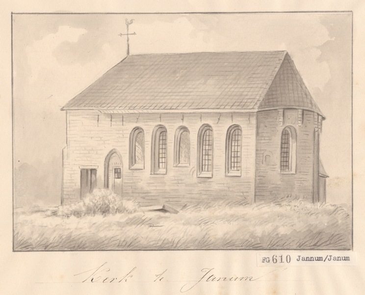 Gezicht op de kerk te Jannum (Janum) in Dantumadeel