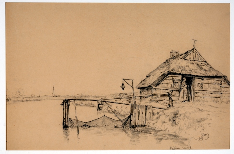 Gezicht op een dichtzet in de Valomstervaart oost bij het dorp Veenwouden
