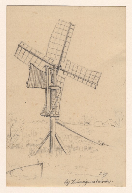 Gezicht op een paalmolen bij Zwaagwesteinde