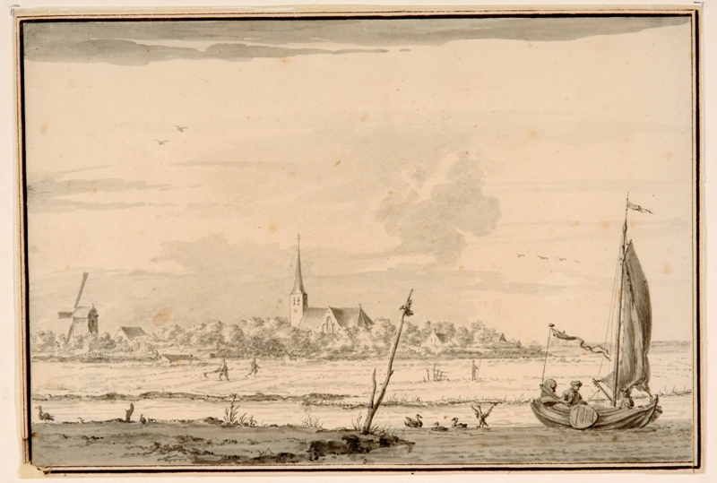 Gezicht op het dorp Bergum in Tietjerksteradeel vanaf het meer