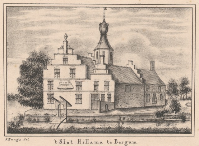 Gezicht op het slot Hillama State te Bergum in Tietjerksteradeel