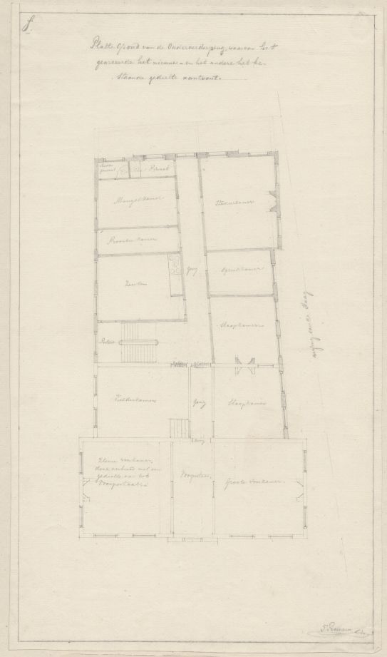 Voorstelling in lijnen van een architectonisch object langs geometrische weg, die niet een indruk weergeeft, zoals het gebouw door het menselijk gezicht gezien kan worden, maar de abstracte driedimensionale gedaante van het object, verkregen door stelselmatige berekening en opmeting. De weergave geschiedt op schaal en meestal in orthografische projectie. Voor de aanschouwelijkheid worden er soms perspectivische voorstellingen bijgevoegd. Een stel architectuurtekeningen bestaat gewoonlijk uit plattegrond(en) of horizontale doorsnede(n), gevelopstanden, lengte- en dwarsdoorsneden, vaak ook details. Zoals hiervoor werd aangeduid, is de architectuurtekening:–ontwerp voor een voorgenomen bouwwerk of bouwdeel, ev. met varianten. Voor de uitvoering zijn nog werktekeningen nodig. In het eerste stadium kan een ontwerp schetsmatig, algemeen oriënterend en suggestief zijn. In alle perioden sinds de vroege M.e. zijn ontwerptekeningen gemaakt. Ook symbolische ontwerpen, zoals het Pantheon der Mensheid van Berlage uit 1915, kan men hiertoe rekenen.–opmeting van een bestaand object, ter herinnering, als voorbeeld, met het oog op herstel, ev. een reconstructie, b.v. het schetsboek van Villard de Honnecourt (c. 1235), de talrijke restauratie-ontwerpen van architecten in XIX-XX en de sinds de renaissance geliefde reconstructie van antieke bouwwerken. Het oudst bekende document op dit gebied is de plattegrond voor de abdij van St.-Gallen in Zwitserland, dat in het archief van deze abdij bewaard is. Het is een ideaal schema dat iemand uit de hofkring van Karel de Grote omstreeks 820 aan abt Gozbert toezond. Het is slechts gedeeltelijk verwezenlijkt, maar zeer belangrijk voor de kennis van de vroeg-m.e. aanleg van kloosters. De opstand van een aantal gebouwen is in het horizontale vlak neergeslagen, zoals ook op een schetsmatige plattegrond van c. 1150 van de abdij van Canterbury.Meer recht op de naam architectuurtekening heeft een aantal tekeningen uit de gotische tijd, waarvan wij aanstippen verschillende tekeningen in het Livre de portraicture van Villard de Honnecourt. Hier worden op geometrische basis (driehoeken, rechthoeken, diagonalen) onderdelen aangegeven betreffende de kathedraal van Reims en het maaswerk daarvan, roosvenster te Lausanne, toren van Laon, plattegronden van Meaux en Cambrai (Kamerijk). Verder bleven vele tekeningen uit XIII-XV bewaard, o.a. te Reims, Straatsburg, Keulen, Clermont, Limoges, St.-Quentin, Milaan, Wenen, Barcelona. Interessant zijn een ontwerp uit c. 1230 voor de O.L.V.kerk te Trier op een steen in een traptoren en M. Röritzers gedrukte boekje uit 1486 over ‘der Fialen Gerechtigkeit’. Ook in de Nederlanden bleven talrijke tekeningen bewaard, uit de late M.e. (torens te Breda, Mechelen, Zierikzee en Mons, stadhuis te Gent) en vele uit latere perioden. In het kasteel Cannenburch te Vaassen (Gld.) is een in de pleisterlaag ingekraste tekening op ware grootte aangetroffen van een gevelbeëindiging. Met de uitvinding van de boekdrukkunst en vooral na die van het centrale perspectief en de theoretische grondslagen van de projectie verschijnen de ontwerpen en reproducties in talloze werken over architectuur ( ordeboek, architectuurtraktaat).Kenmerkend voor de architectuur uit de Noord-Europese baroktijd is een eigenaardige behandeling, waarbij uitspringende architectuurdelen wit worden gelaten. Eind XVIII is de toen geliefde scenografie (verkort weergegeven tekeningen, ook voor toneeldoeken) van invloed, getuige de ‘vedute’ (1745-’75) van Piranesi c.s.. (Haslinghuis) https://data.cultureelerfgoed.nl/term/id/cht/25df5f68-005c-45b0-afba-d6f13b9b41e1