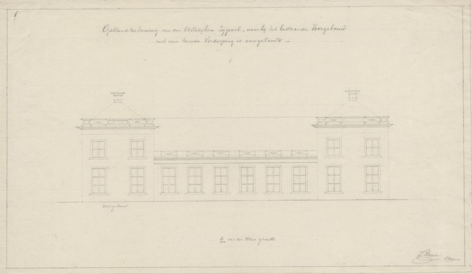 Opzet van een tekening van de oostelijke zijgevel