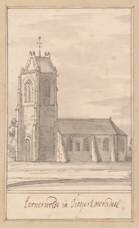 Gezicht op de kerk met stompe toren te Eernewoude