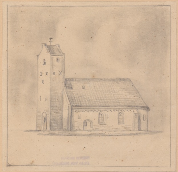 Gezicht op de kerk met stompe toren te Eestrum