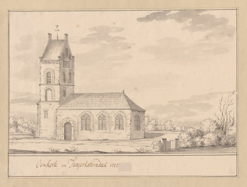 Gezicht op de kerk te Oentsjerk in Tietjerksteradeel