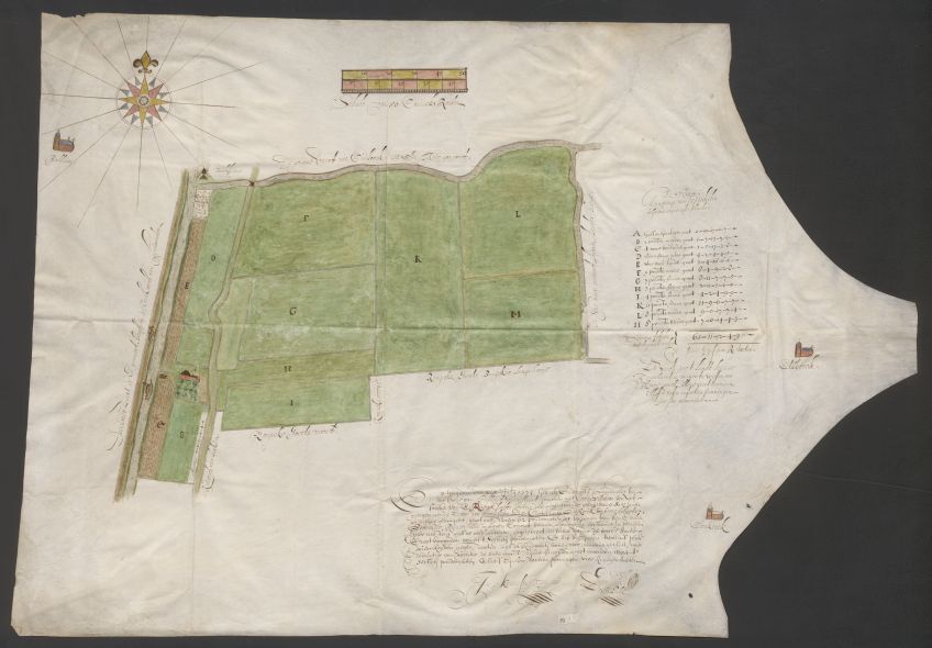 Plattegrond van opgemeten percelen langs de Dokkumer vaart, Oude Meer en Nieuwe Meer, tussen Hallum en Oentsjerk