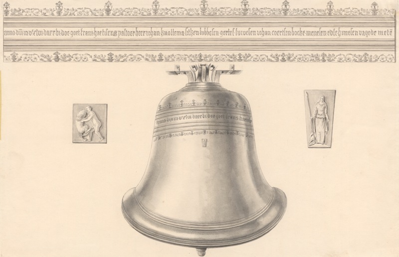 Gezicht op een luidklok in de toren van de kerk te Rijperkerk