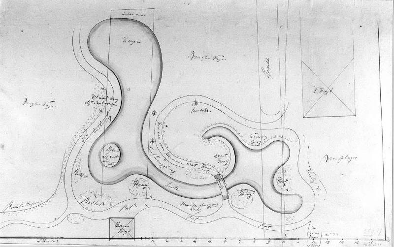 Schetstekening van het plantsoen van Vijversburg te Ryptsjerk