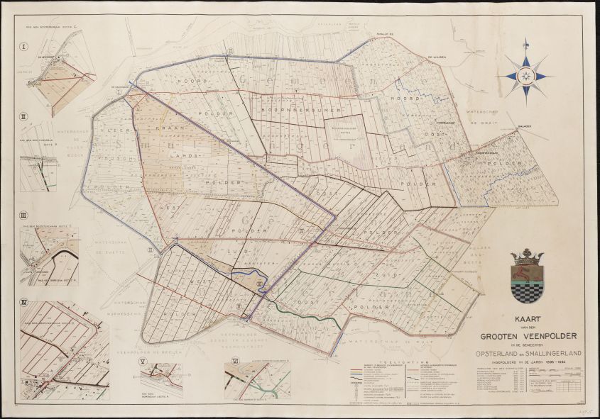 Kaart van de Grote Veenpolder in de gemeenten Opsterland en Smallingerland