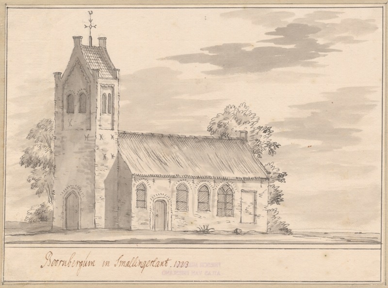 Gezicht op de kerk met stompe toren te Boornbergum in Smallingerland