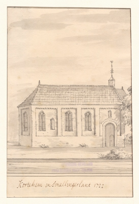 Gezicht op de kerk met spits torentje te Kortehemmen