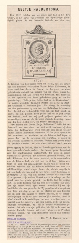 Gedenksteen met portret voor Dr. E. Halbertsma te Grou