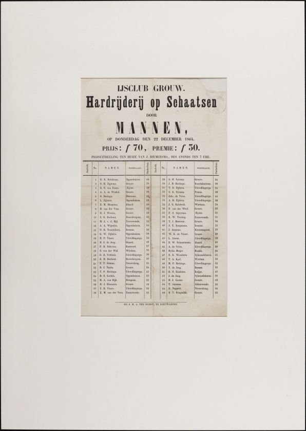 IJsclub Grouw. Hardrijderij op schaatsen door mannen op donderdag den 22 december 1864