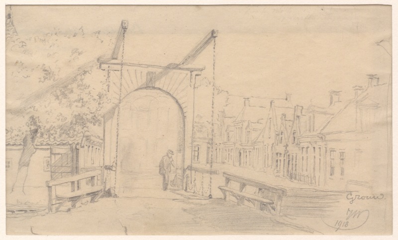 Gezicht op de klapbrug met huizen te Grou