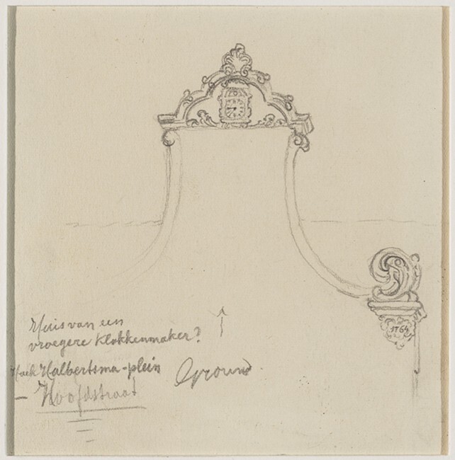 Gezicht op een Lodewijk XV gevel met uurwerk te Grou